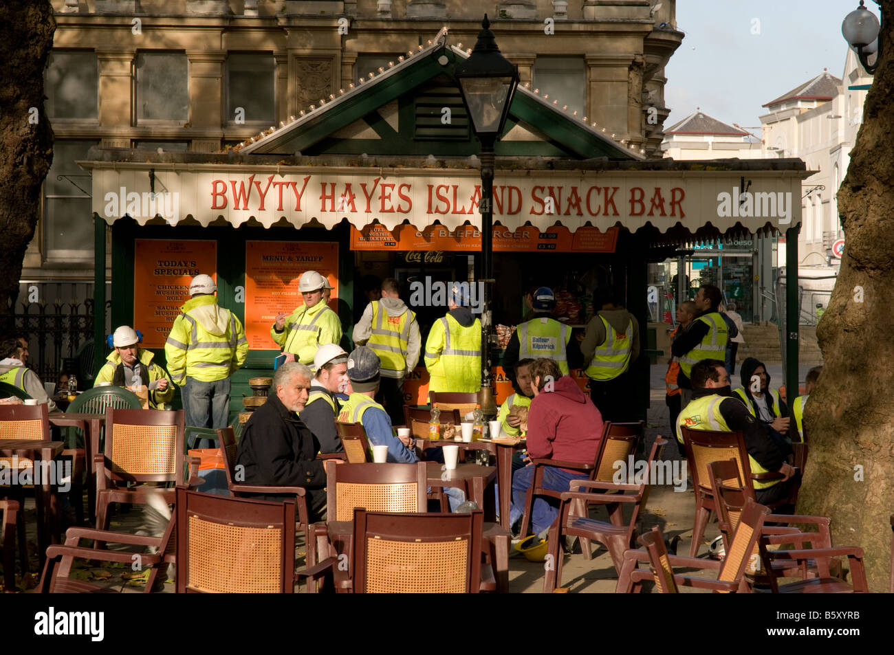 Group Of Construction Workers Taking A Break At The Famous